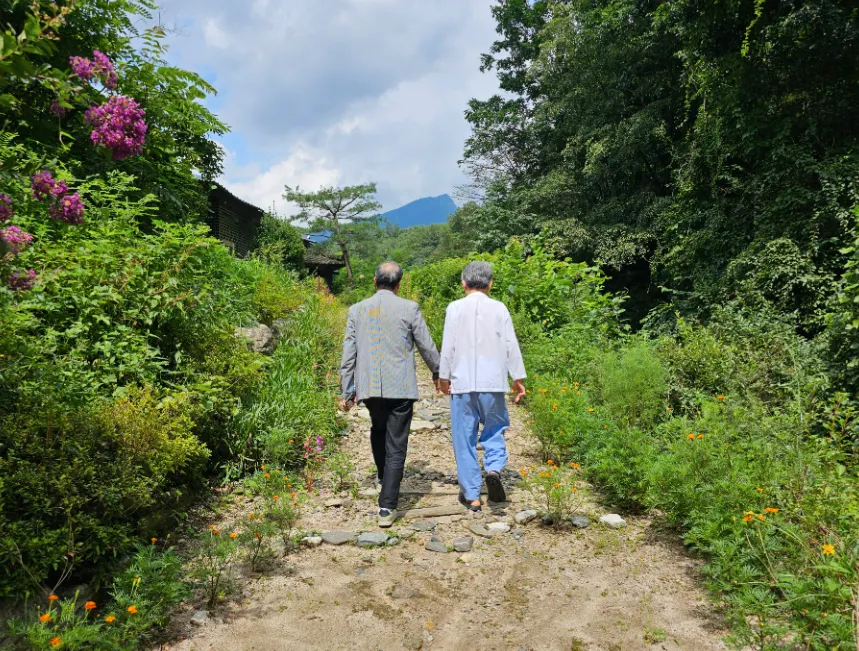 옹기종기 핀 꽃들이 앙증맞고, 집 뒤에는 태풍으로 불어난 계곡물이 더욱 시원한 소리를 내고 있었습니다.