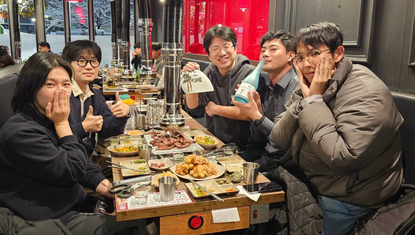 피노랩은 직원 복지면에서도 만족스러웠어요. 우선 점심 식대 지원이 됩니다. 양재 시민의숲 일대의 다양한 맛집에서 점심을 즐길 수 있었어요. 회식 때는 양갈비 등 맛있는 음식을 함께 나누며 팀원들과 친밀감을 쌓았습니다. 또한 사무실 내 편의시설로 커피머신과 간식이 제공되었고, 냉장고에는 시원한 프리미엄 생수가 항상 비치되어 있어 자유롭게 즐길 수 있었어요. 이외에도 ChatGPT 유료 버전을 지원합니다. 이런 최신 AI 도구를 자유롭게 사용할 수 있어서 업무 효율도 높아지고 새로운 기술도 배울 수 있었어요.