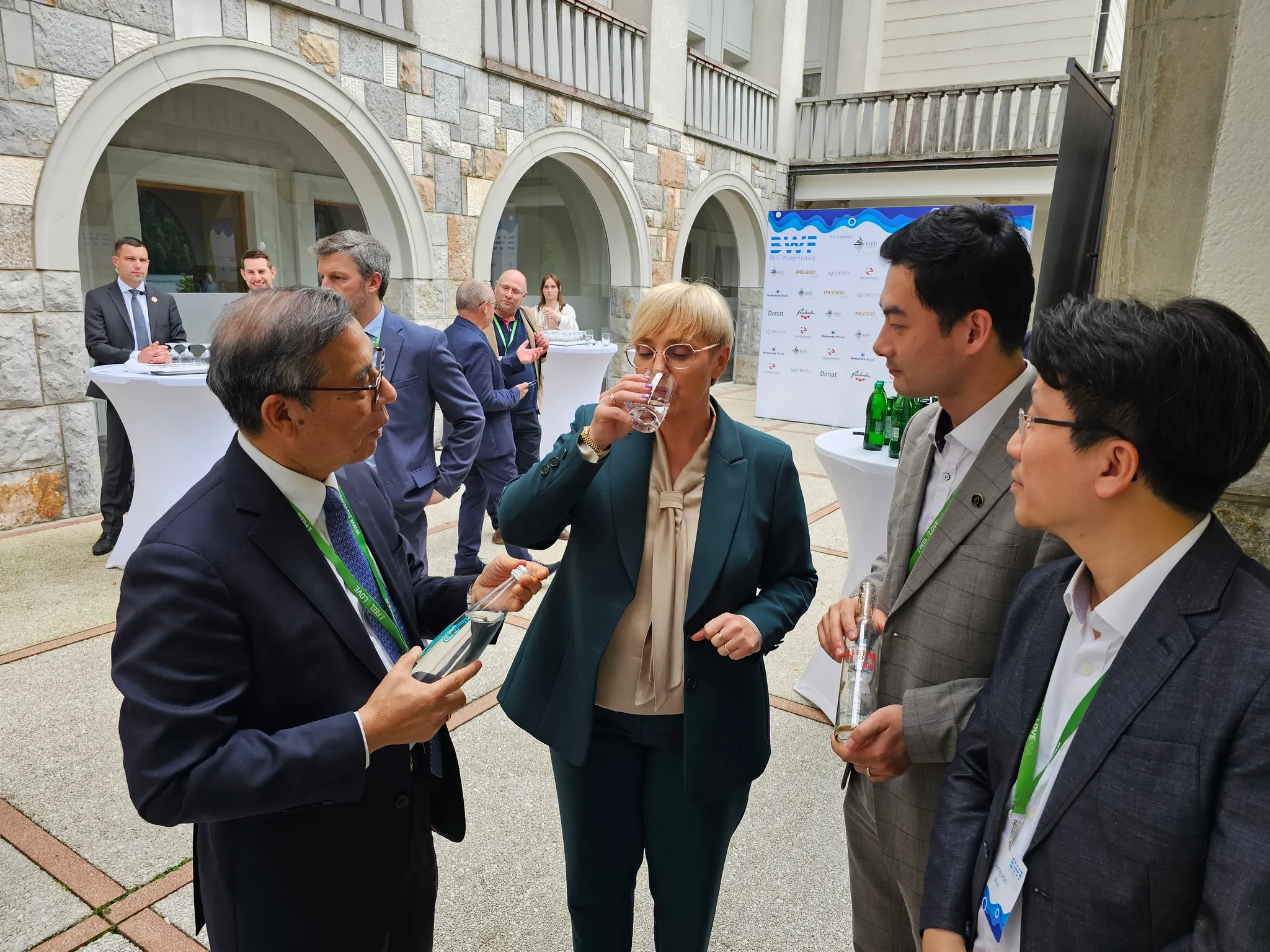 마지막 날 행사에서는 EWA (European Water Award) 시상을 위해 나타샤 피르츠 무사르(Natasa Pirc Musar) 슬로베니아 대통령과 남편 알레스 무사르(Ales Musar) 박사 내외가 방문했는데요. 피노랩에서는 대통령에게 선물을 전달하고, 당사 서비스에 대해 소개하고 한국의 생수를 같이 시음하는 시간도 가졌습니다.