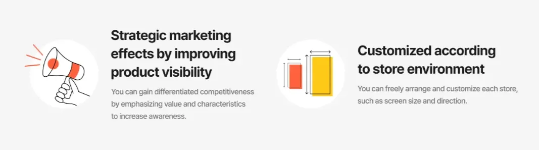 Enhance store communication with digital billboards that effectively deliver product information, promotional content, and advertisements. This modern solution helps to engage consumers, inform their purchasing decisions, and elevate your store’s visibility.